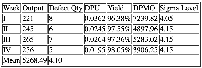 Table 2. Sigma Level Calculation