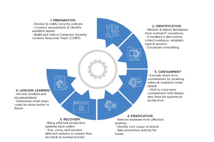 An incident response lifecycle comprises the following six steps: